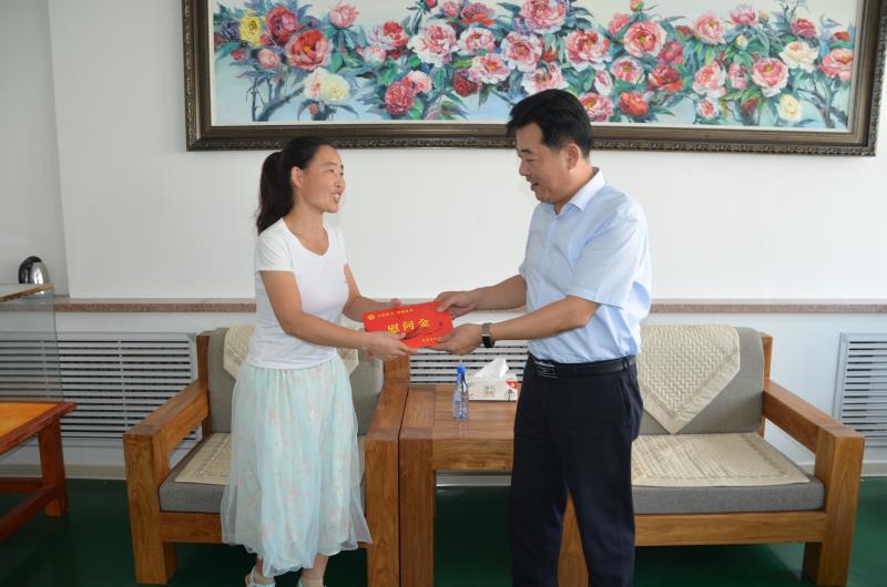 95日,環翠區區委副書記宋華東、環翠區總工會主席鄒杰來到宇王集團海洋生物科技產業園,走訪慰問了困難職工,表達黨和政府的關心和祝福,并為他們送去了助學金。宇王集團董事長苗強,工會主席隋樹武陪同慰問。